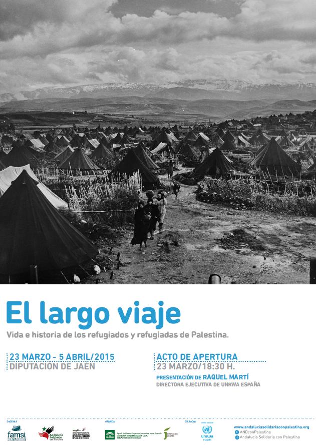 La Diputación de Jaén acoge el próximo 23 de marzo, la muestra “El largo viaje”, una exposición fotográfica del archivo de UNRWA que cuenta la historia de los refugiados de Palestina y que permanecerá abierta al público hasta el 5 de abril. Como un relato lleno de dignidad y adversidad, la muestra narra la huída de más de 700.000 personas a raíz de la guerra Árabe-Israelí. Se trata de una iniciativa del Fondo Andaluz de Municipios para la Solidaridad Internacional (FAMSI), que cuenta con el apoyo de la Agencia Andaluza de Cooperación Internacional al Desarrollo (AACID), dentro del proyecto “Andalucía Solidaria con Palestina: Año internacional de Naciones Unidas de solidaridad con Palestina” iniciado en 2014.